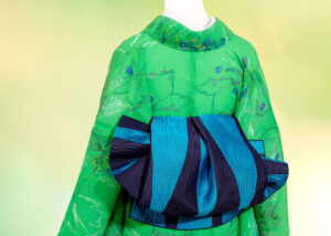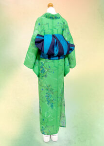 こちらの帯は浴衣に合わせていくつかご紹介してきましたが、幅広でしなやかな素材のため、着物風の着こなしにも活かせます。