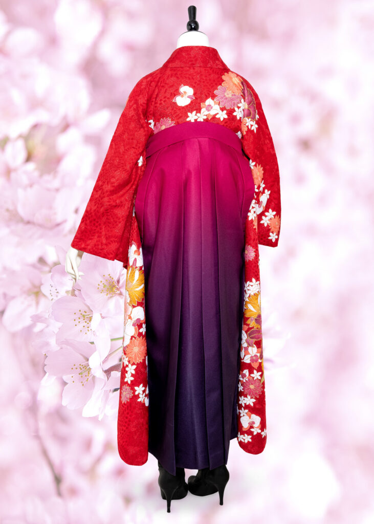 後ろ側も色味、絵柄ともに華やかです!袴のグラデーションが鮮やかでとても華のある着姿になります。