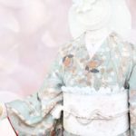 白系のトーク帽やオーガンジー素材の帯揚げ、そしてシースルーの靴下にヒールを合わせてレディな印象に♪