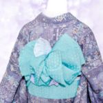 帯は明るく爽やかなミントグリーンの半幅帯を文庫系のアレンジに結んでいます。
