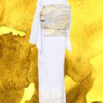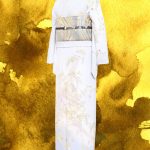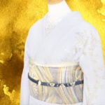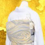 後ろ姿は帯の金糸が華やかで優雅な曲線を描く波模様が涼しげに見えます。