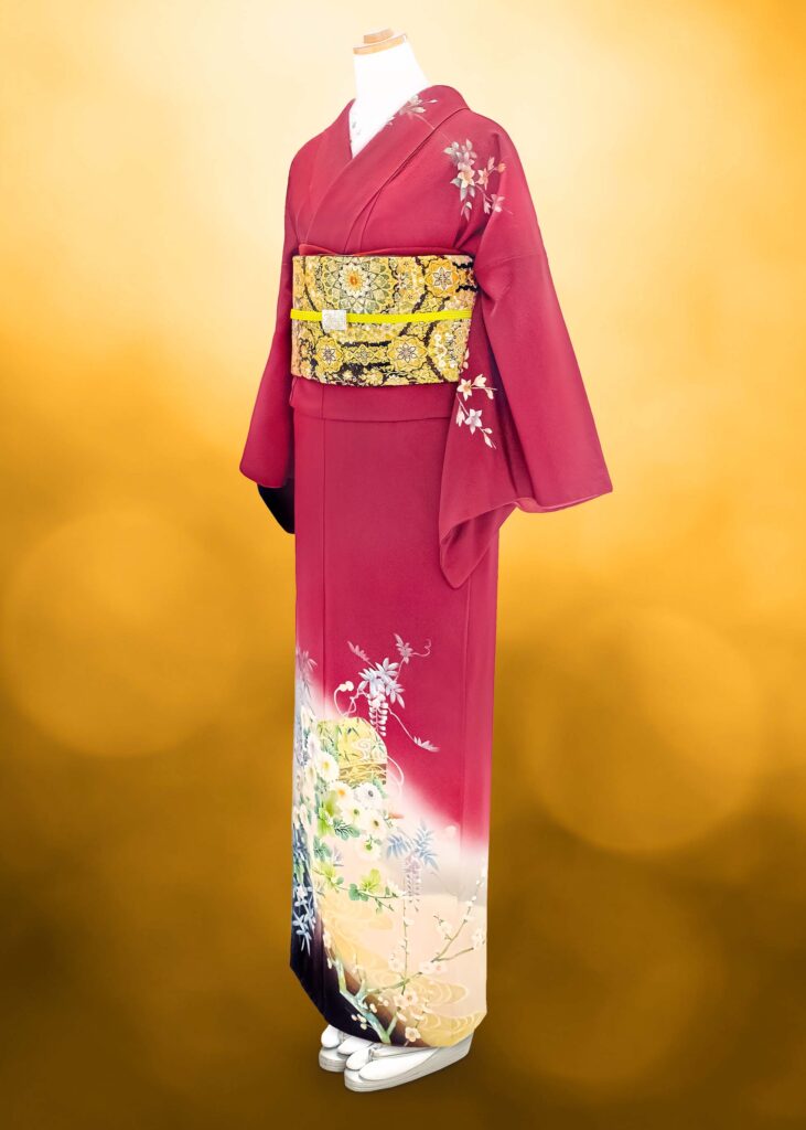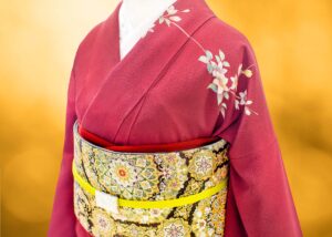 本日は深い赤色が印象的な訪問着を使ったコーディネートをご紹介いたします。