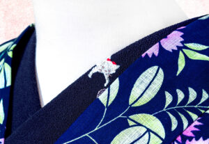 襟をよーく見ると…赤いリボンをした猫ちゃんが鞠(毛糸?)で遊んでいます♡