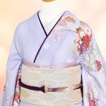 淡い紫色に華やかな絵柄の訪問着で作る、紫系のコーディネートです!