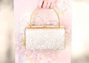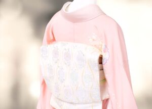 帯も白系を合わせて、後ろ姿も明るく。 春の装いにおすすめです!また、礼装用のバッグのレンタルもオプションにて承っております。