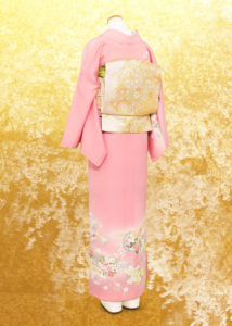 鮮やかなピンクが若々しい雰囲気のこちらの訪問着。