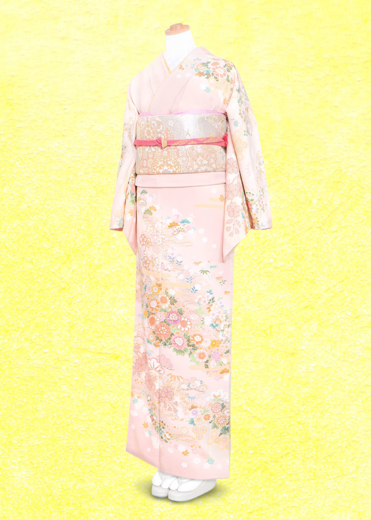 淡く明るい雰囲気のピンクの訪問着。