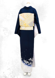 後ろ見頃は絵柄が控えめで、帯の柄で魅せるコーディネートがオススメです。