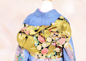 銀糸の帯でスッキリと着るのも素敵ですが、今回は金糸で華やかなコーディネートにしました。