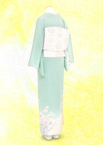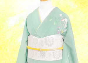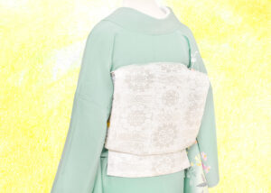 帯は銀糸の刺繍が施された上品なものを。着物の色を引き立てて、より明るい着姿になります。