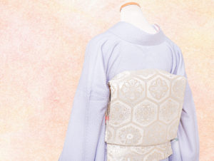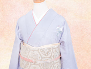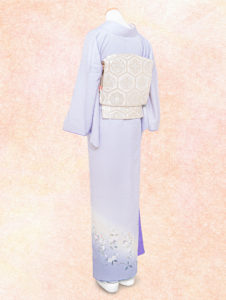 薄紫色の地色に白く可憐な花が咲いた訪問着です。