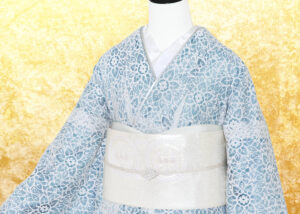 290 青系のレースの色無地コーデ
