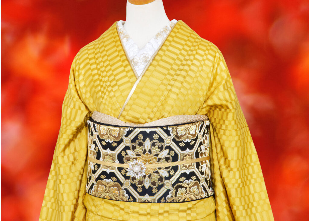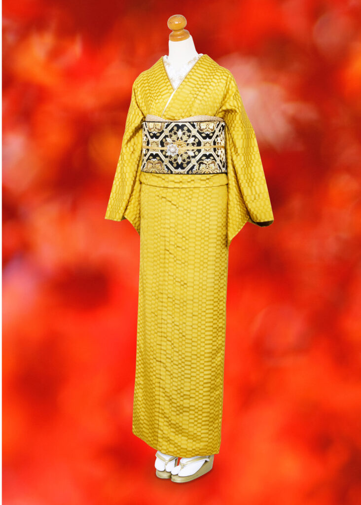 264 鮮やかな黄色の色無地コーデ