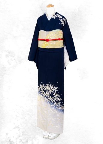 225 濃紺に豪華な刺繍の訪問着
